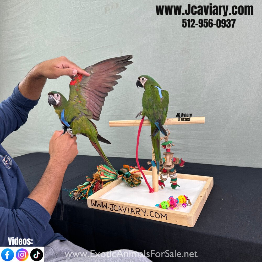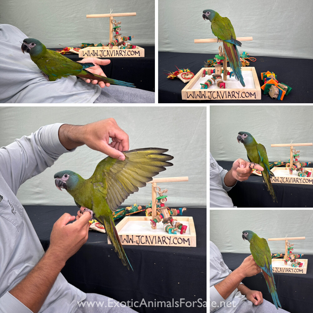 Incredibly sweet, tame, hand-fed and fully trained blue-headed mini macaw baby ready now for his forever home. He is weaned on a healthy diet of organic pellets, veg and mixed nuts. All our babies are sweet and very socialized. Please see our website...