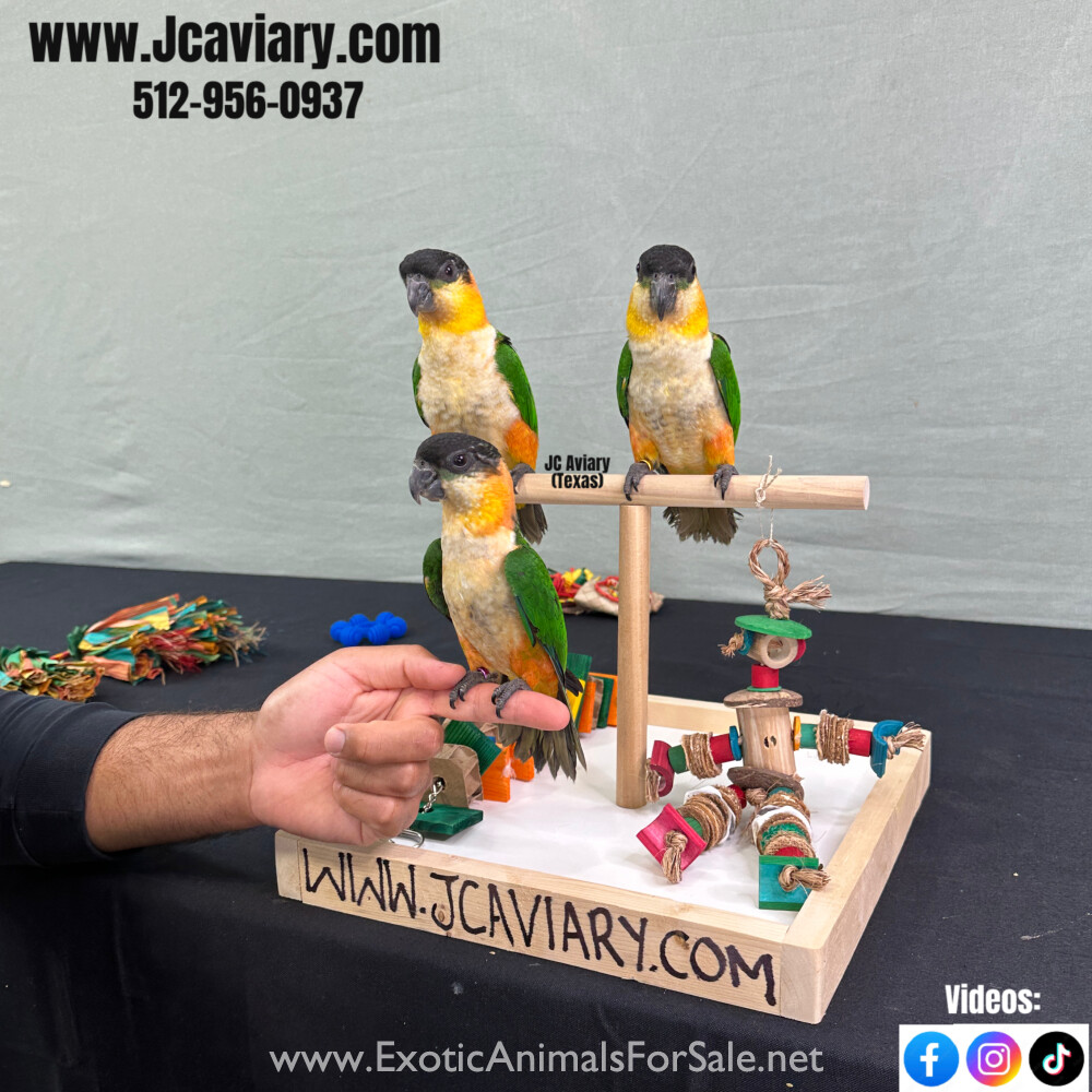 Incredibly sweet, tame, hand-fed and trained black-headed caique babies ready now for their forever homes. These babies are weaned on a healthy diet of organic pellets, veg and mixed nuts. All our babies are sweet and very socialized. Please see our...
