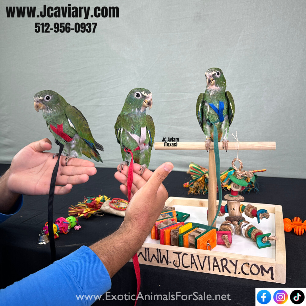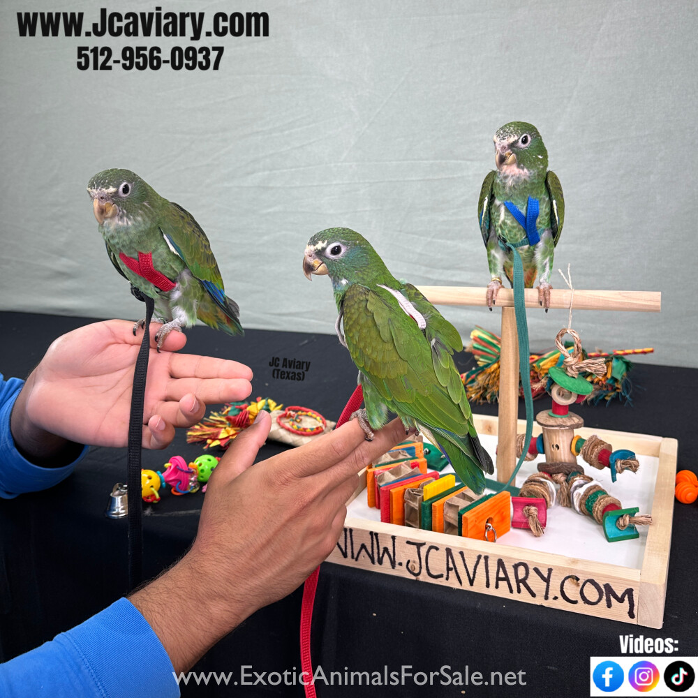 Incredibly sweet, tame, hand-fed and trained Maximilian Pionus babies ready now for their forever homes. These babies are weaned on a healthy diet of organic pellets, veg and mixed nuts. All our babies are sweet and very socialized. Please see our we...