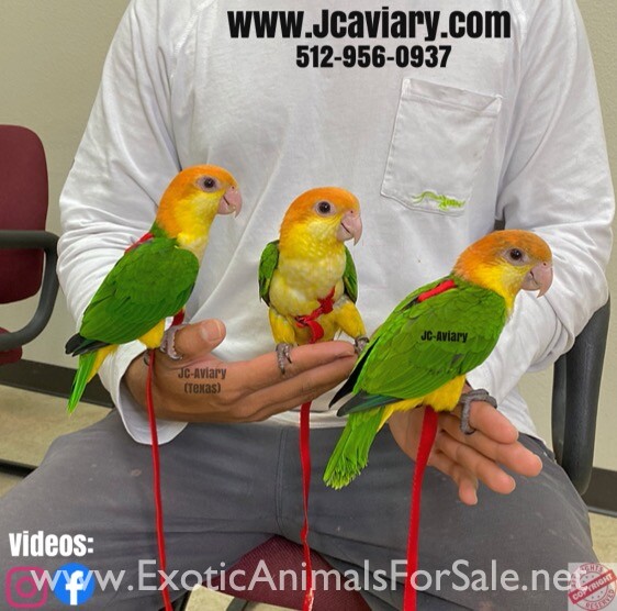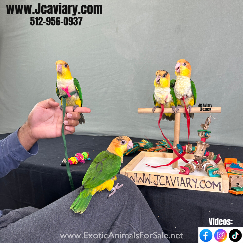 Incredibly sweet, tame, hand-fed and trained white bellied caique babies ready now for their forever homes. These babies are weaned on a healthy diet of organic pellets, veg and mixed nuts. All our babies are sweet and very socialized. Please see our...