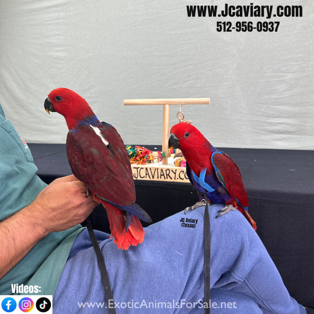 Incredibly sweet, hand-fed, tame, and fully trained Female SI-Eclectus babies ready now for their forever homes. These babies are weaned on a healthy diet of organic pellets, veg and mixed nuts. All our babies are sweet and very socialized. Please se...