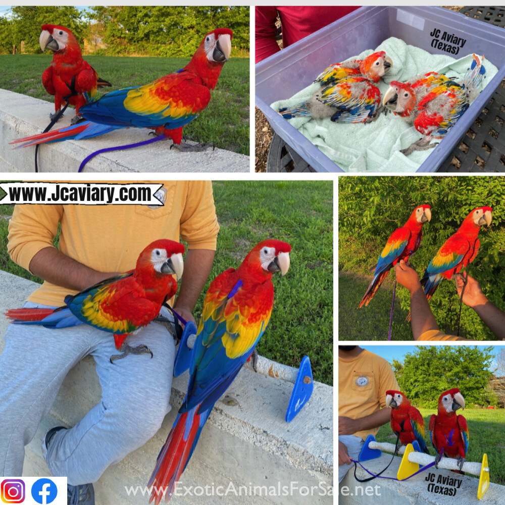 Accepting reservations on these incredibly sweet Scarlet macaw babies. They are still being hand-fed and will eventually be fully trained by us as well. They will be on a healthy diet of organic pellets and vegetables. All our babies are sweet and ve...