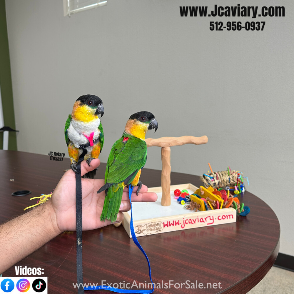 Incredibly sweet and trained black headed caique babies ready now for their forever homes. They are weaned on a healthy diet of organic pellets, veg and mixed nuts. All our babies are sweet and very socialized. Please see our website for detailed inf...