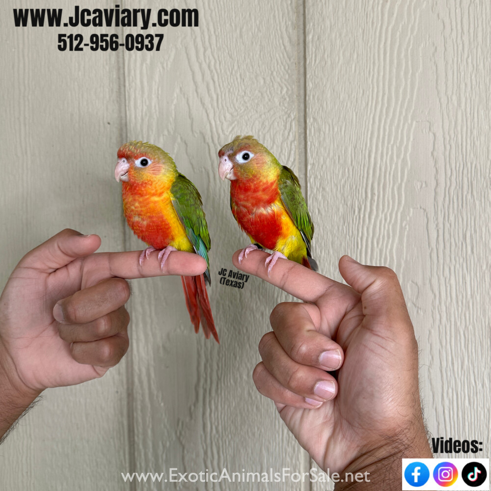 2 Incredibly sweet and trained HIGH-RED pineapple green cheek conure babies ready now for their forever homes. They are weaned on a healthy diet of organic pellets, veg and mixed nuts. All our babies are sweet and very socialized. Please see our webs...