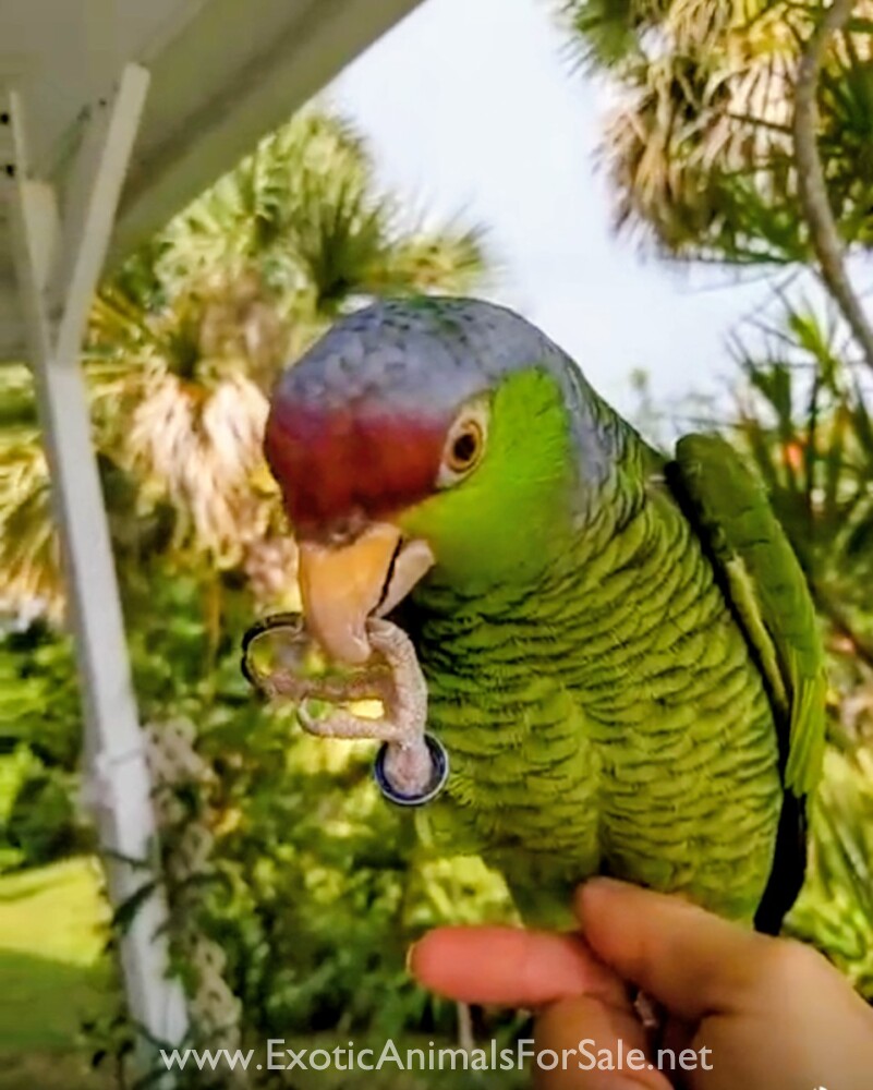 Baby white fronted amazon. Handfeeding. Steps up and loves cuddles. Full of energy.