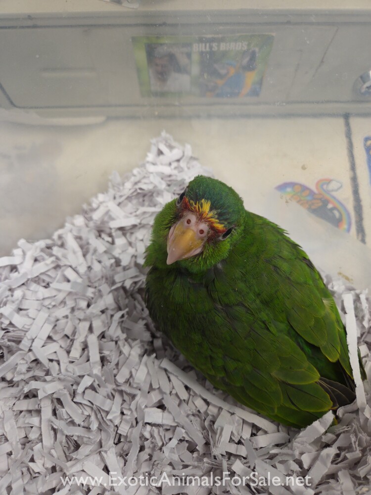 "Scientific Name: Amazona albifrons Native Range: Central America The White-fronted Amazon, also known as the Spectacled Parrot, is a small Amazon parrot species within the family Psittacidae. It is named for the distinctive white patch on the fore...