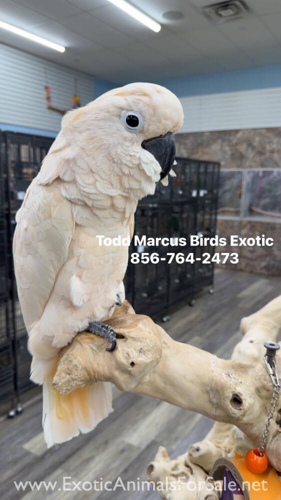 Beautiful Male Moluccan Cockatoo available! He is currently 14 months old and very sweet and already a great mimicker! Here at Todd Marcus Birds Exotic, we have over 40 years of experience raising the happiest & healthiest baby birds. We are convenie...