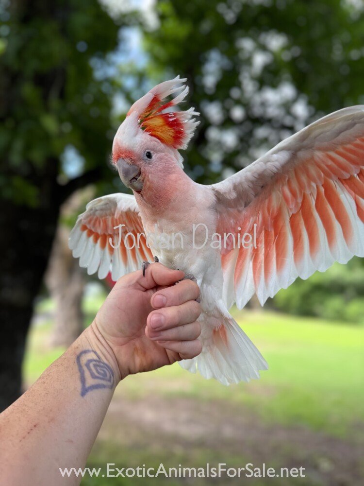 Currently hand feeding is a sweet baby Major Mitchell Cockatoo. Now accepting deposits to reserve until weaned. We offer shipping go to birdmansparrots.com and apply today or call 773-317-3785.