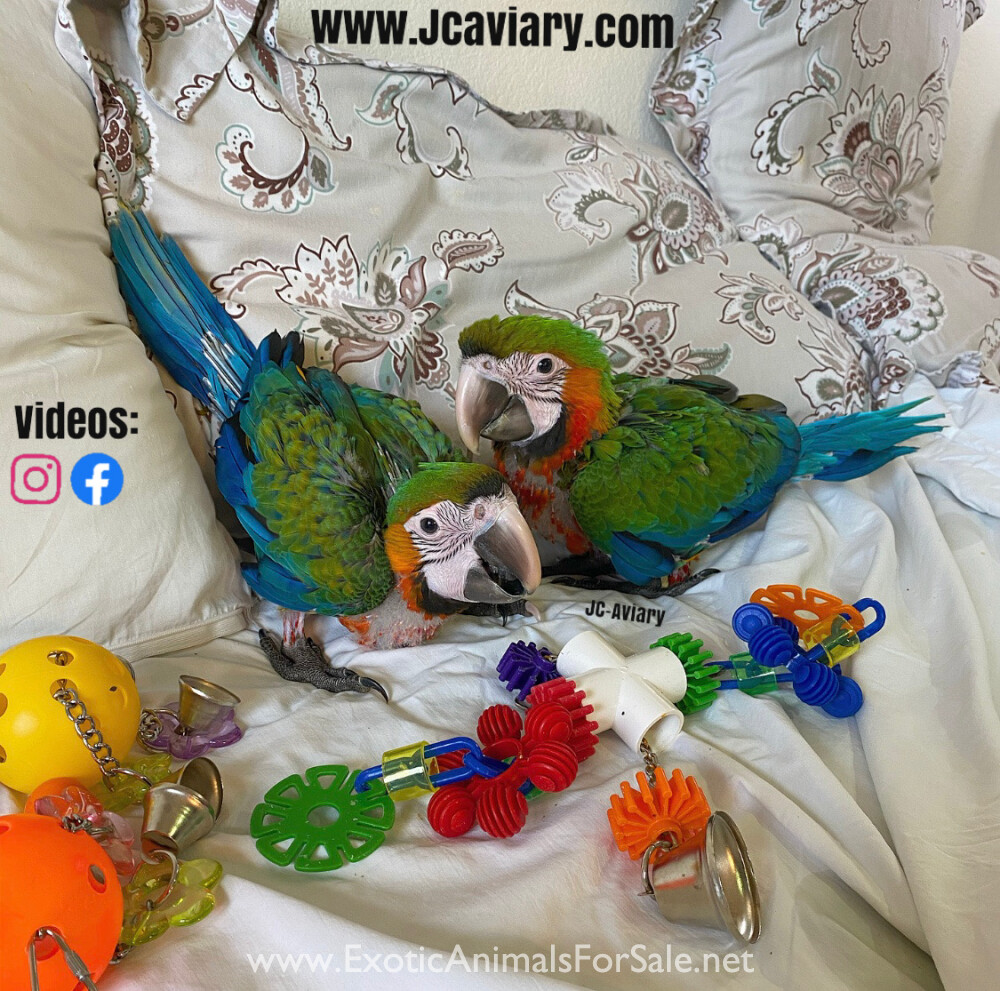 Accepting reservations on these 2 adorable RubyGold macaw babies. They are currently being hand-fed and will eventually be fully trained by us as well. They will be on a healthy diet of organic pellets and vegetables. All our babies are sweet and ver...
