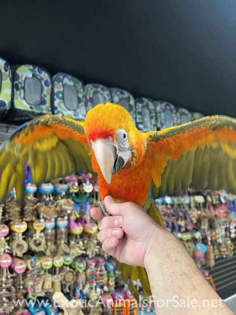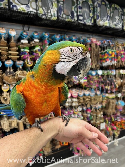 Hand tame and sweet Catalina Macaw Hybrid available. For more info call 773-317-3785. We are located at 710 Lee St. Des Plaines Il 60016.