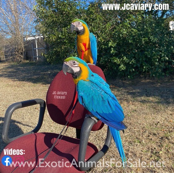 Accepting reservation on these 2 adorable blue and gold macaw babies. They are still being hand-fed and fully trained by us as well. They will be on a healthy diet of organic pellets and vegetables. All our babies are sweet and very socialized. Pleas...