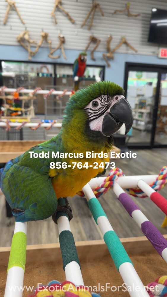 Camelot Macaw available. Bright in color and in personality. Here at Todd Marcus Birds Exotic, we have over 40 years of experience raising the happiest & healthiest baby birds. We are conveniently located in Delran, NJ which is just outside of Philad...