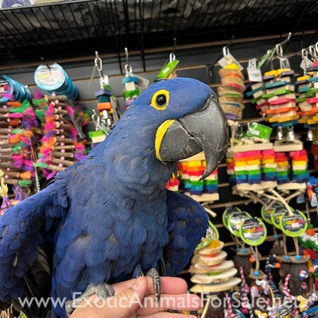 Hand tame very friendly and sweet dna tested female Hyacinth Macaw. Say hi to “DOLLY” she’s is very comical she says hello, come here, peek-a-boo and loves to cuddle. Call us for more info 773-317-3785. ***SERIOUS INQUIRES ONLY*** PLEASE CALL FOR PIR...
