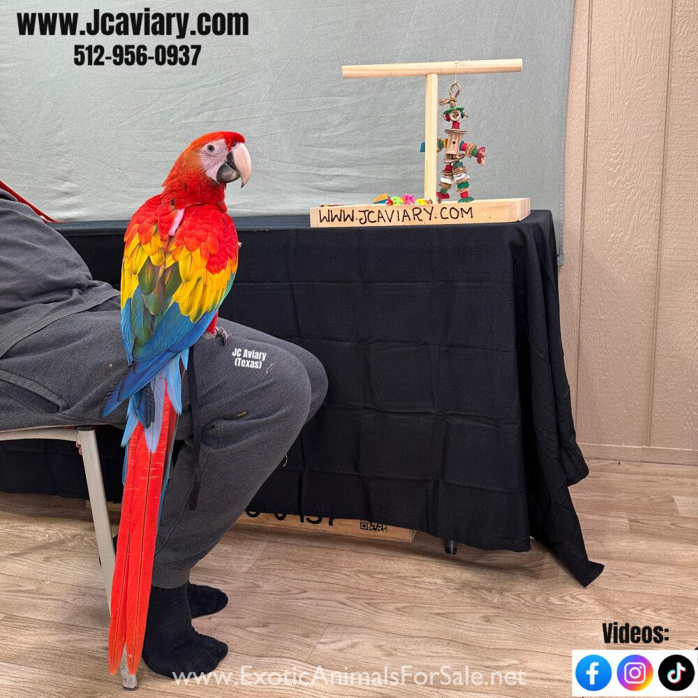 Incredibly sweet, tame, hand-fed and fully trained Scarlet macaw baby. This baby is on a healthy diet of organic pellets, veg and mixed nuts. All our babies are sweet and very socialized. Please see our website 4 detailed info! For inquiries please c...