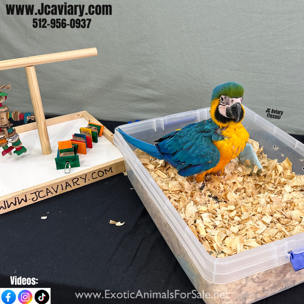Accepting reservation on this adorable Blue and Gold macaw baby. He is currently being hand-fed and fully trained as well. He will be on a healthy diet of pellets and vegetables. All our babies are sweet and very socialized. Please see our website fo...