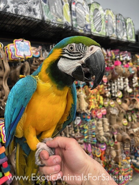Say Hi to "OZZIE" he's a beautiful large Blue & Gold Macaw who is very laid back and sweet. We offer financing go to birdmansparrots.com and apply today or call 773-317-3785.