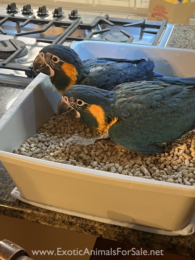 Accepting reservations on these adorable Blue and Gold macaw babies. They are currently being hand-fed and will eventually be fully trained by us as well. They will be on a healthy diet of organic pellets and vegetables. All our babies are sweet and...
