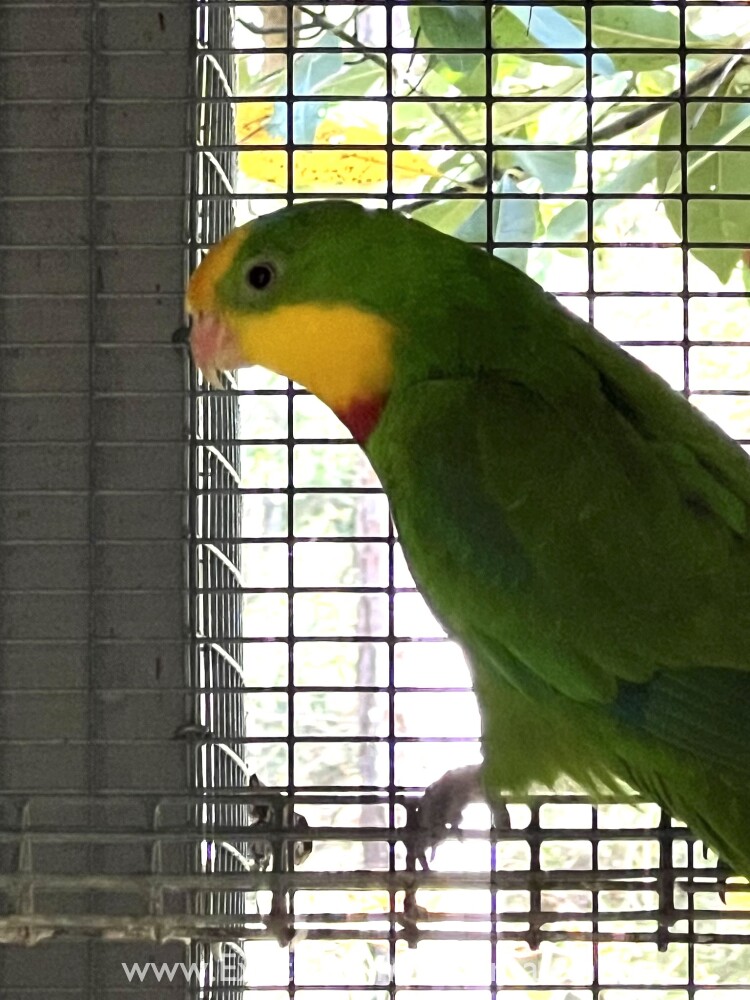 Baby Derbyan parakeet Female. These are not moustache parakeet, much larger, similar size to a small amazon. Available for $1800 for continued handfeeding. $2200 fully weaned. NO SCAMS NO CODES Pretty Exotic Birds, LLC (ELA) ELO-LAEO FWC licens...