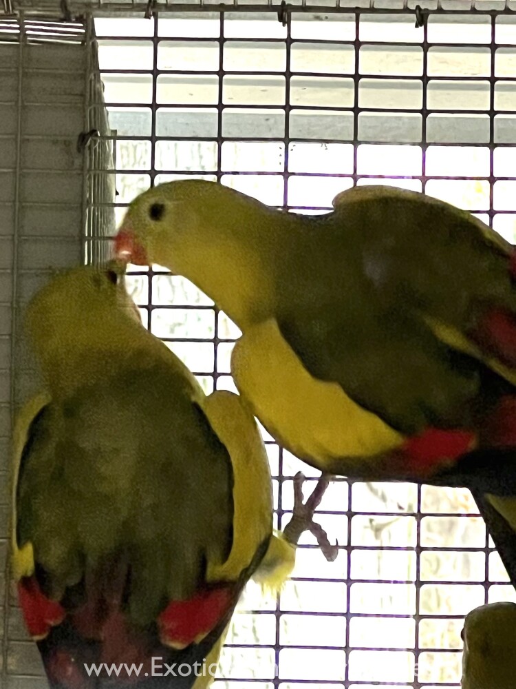 Have several unrelated pair of eastern rosellas. Pairs can consist of 4 Fiery Pastel( 3 male 1 female) Golden Mantel(2 males 1 female) Golden Mantel split golden gold( 3 female) Can make several unrelated pairs. Asking 400 each All birds are d...