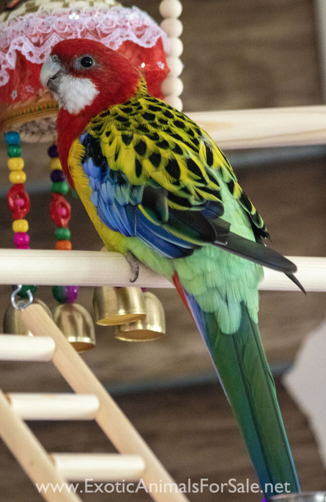 Eastern Rosella Male 2 years old Not hand tamed $450 We are rehoming our Male Eastern Rosella, around 2 years old. He is not hand tamed but is full of personality, loves to chirp, explore the house, and show off his beautiful self. Unfortun...