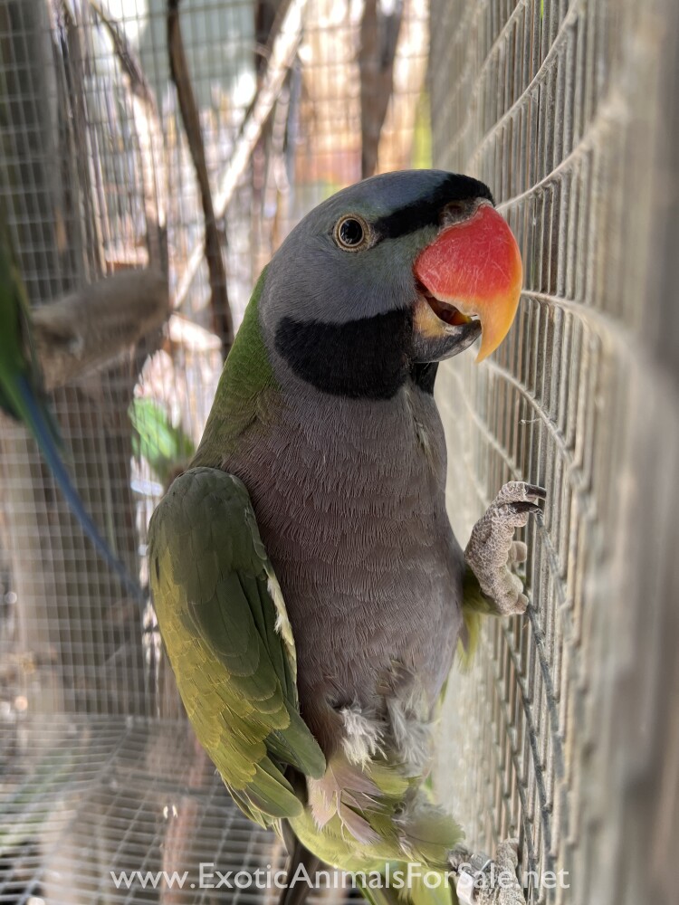"Scientific Name: Psittacula alexandri Native Range: Southeast Asia The Moustached Parakeet also known as the Red-breasted Parakeet is a small parrot species within the genus Psittacula. They are named for the distinct dark band or “moustache” mar...